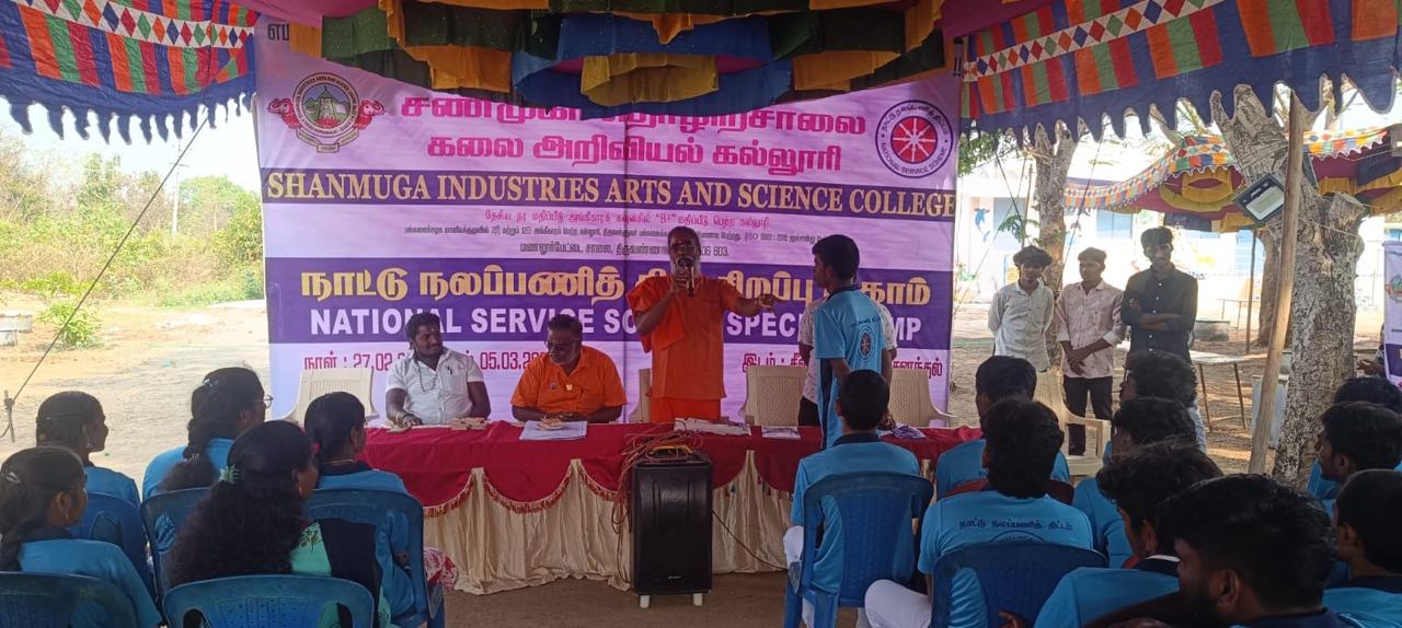 சண்முகா தொழிற்சாலை கல்லூரியில் பயிலும் மாணவ மாணவியர்கள் கலந்துகொண்ட நாட்டு நலப்பணி திட்ட முகாம் (NSS camp) ஆனது திருவண்ணாமலையில் 27/02/2026 அன்று நடைபெற்றது. நமது குருவான சுவாமி சதானந்த சரஸ்வதி அவர்கள் இதில் கலந்துகொண்டு சிறப்புரை ஆற்றினார்..
