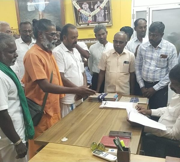 Protest demanding to stop chemical waste from being mixed in the Thenpennai River.
