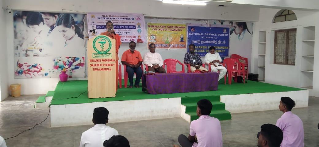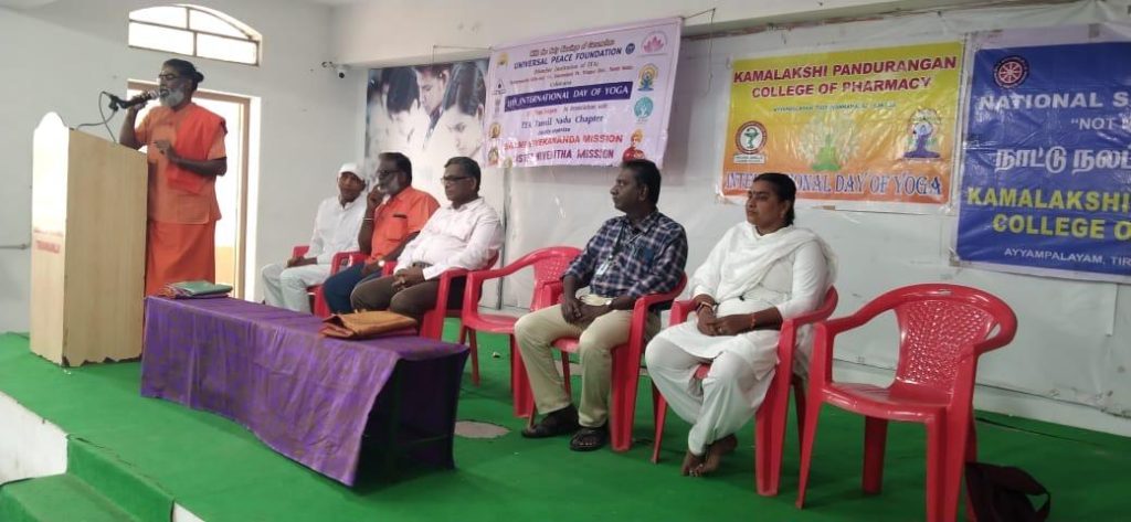 காமாக்ஷி அறிவியல் மற்றும் நர்சிங் மனநலக் கல்லூரியில் நேற்று யோகா தினம் பிரமாண்டமாக கொண்டாடப்பட்டது. இந்த நிகழ்வை நேரு யுவகேந்திரா & மை பாரத், FIT(இந்தியா) நடத்தியது. இதில் நமது குருவான சதானந்த சரஸ்வதி அவர்கள் சிறப்பு விருந்தினராக கலந்துகொண்டு யோகாசனம் மற்றும் உடற்பயிற்சியின் சிறப்பம்சங்களை விளக்குறையாற்றினார்.